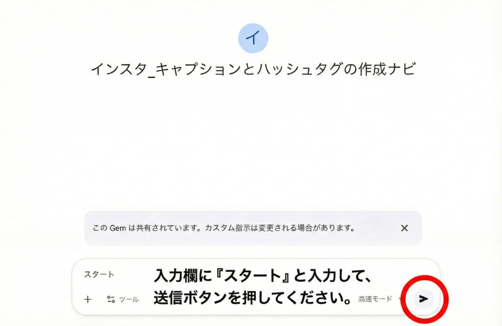 GoogleのAI「Gemini(ジェミニ)」で動く「ハンドメイドInstagram投稿ナビ」です。