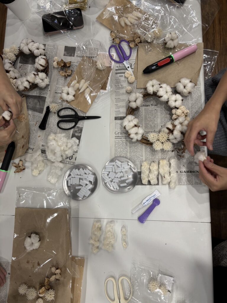 といった歓声があがる、とても賑やかで楽しいひとときとなりました。 指先でコットンのふわふわとした感触を確かめながら、無心になって手を動かす時間は、日常を忘れる最高のリフレッシュになりますね。